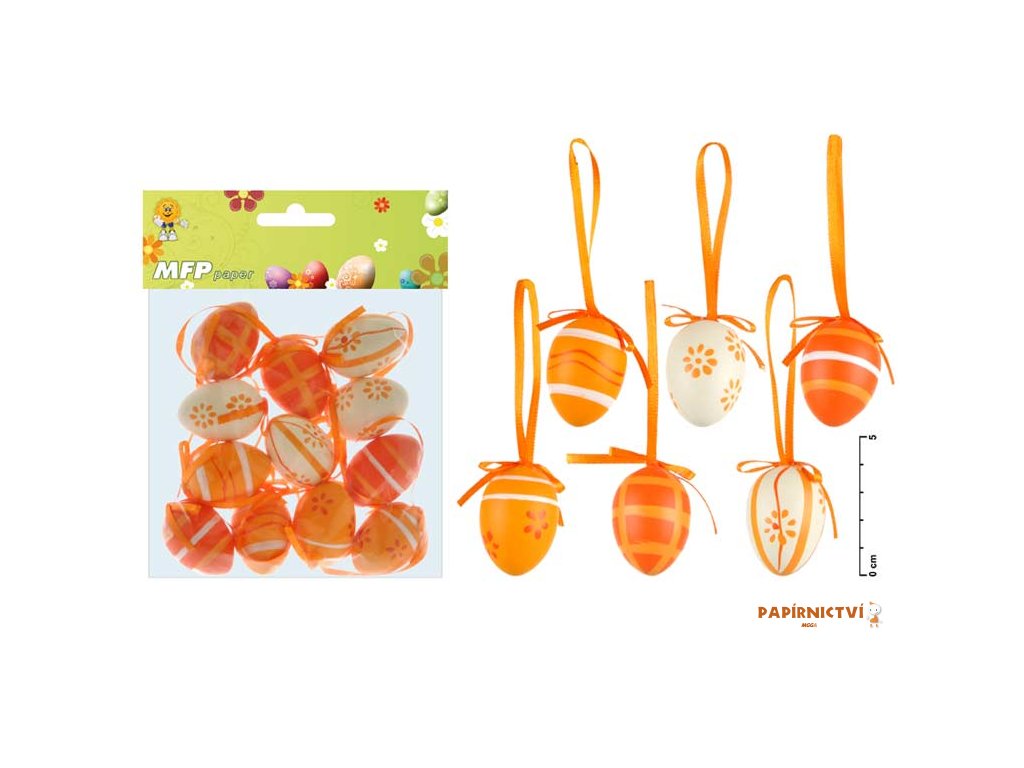 Velikonoční plastová vajíčka s malovanými motivy, v oranžové a bílé barvě. Vajíčka mají stužku na pověšení. Vyzdobte si svůj domov krásnými velikonočními vajíčky, které Vám vytvoří okouzlující atmosféru Velikonoc! Tuto dekoraci můžete použít na dekorování velikonočních věnců nebo větviček.