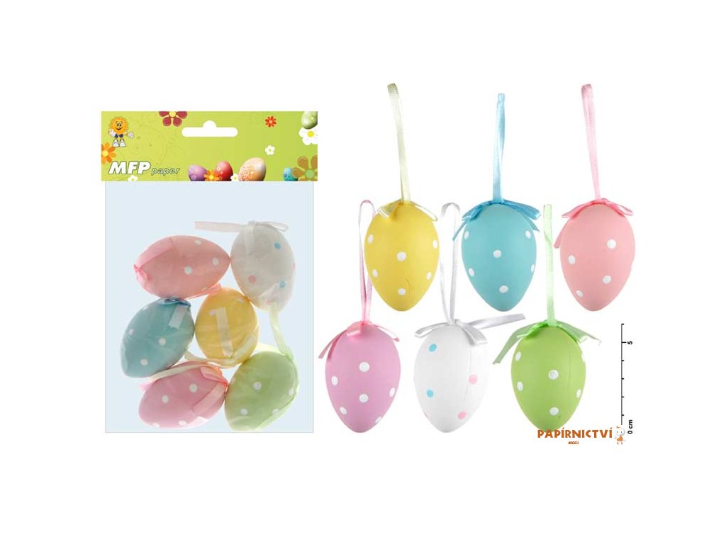 Velikonoční plastová vajíčka s puntíky. Vajíčka mají stužku na pověšení. Vyzdobte si svůj domov krásnými velikonočními vajíčky, které Vám vytvoří okouzlující atmosféru Velikonoc! Tuto dekoraci můžete použít na dekorování velikonočních věnců nebo větviček.