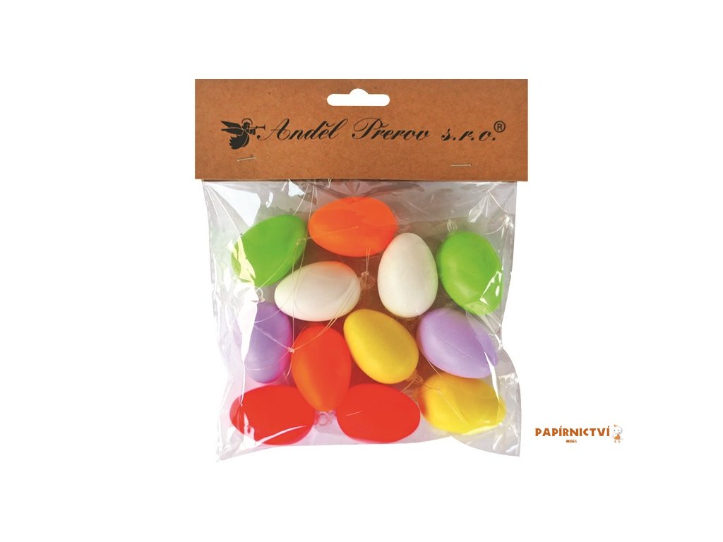 Vajíčka plastová barevná na zavěšení 4 cm, 12 ks v sáčku 7563