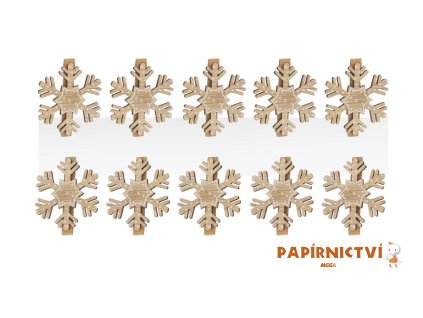 Vánoční, dřevěná dekorace kolíček s vločkou, ozdobí váš vánoční dárek, přáníčka nebo je můžete kamkoliv jinam připnout a ozdobit tak váš interiér. Vyrobeno z překližky.