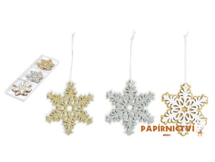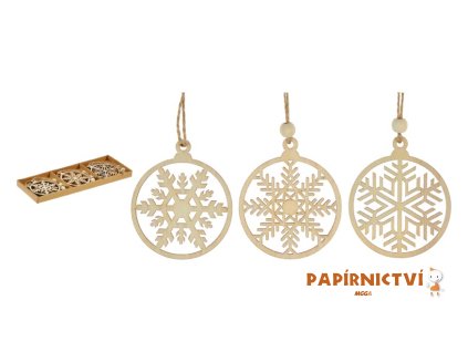 Vánoční dřevěná dekorace vločka se závěsem 6 ks. V horní části je očko s provázkem, které umožňuje snadné zavěšení. Můžete použít na ozdobení vánočního stromečku, zavěsit na...