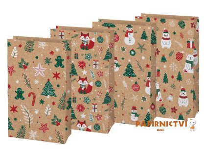 Vánoční papírový sáček KRAFT 4 - vánoční balení, které potěší