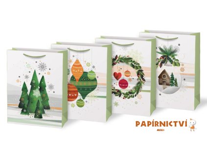 Vánoční dárková papírová taška T4. Je ideální na předání dárků, a velkým pomocníkem když je těžké dárek zabalit do dárkového balicího papíru. Taška je opatřena pevným uchem.