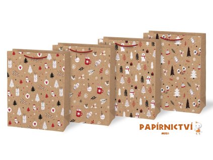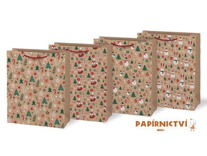 Vánoční dárková taška L LUX KRAFT z pevného kraftového papíru s potiskem. Je ideální na předání dárků, a velkým pomocníkem když je těžké dárek zabalit do dárkového balicího...