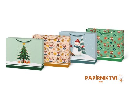 Vánoční dárková papírová taška T8. Je ideální na předání dárků, které je těžké zabalit do dárkového balícího papíru. Taška má pevné ucho pro snadné přenášení a štítek pro...