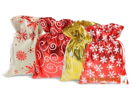 Vánoční látkový dárkový pytlík s vánočními motivy. Vyrobeno z příjemné látky. Skvělý na drobné dárky a jiné maličkosti. Sáček má zavírání na stahovací stužku.