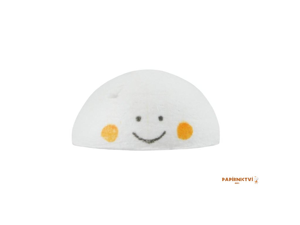 Vatová bílá půlkulička, měkká a lehká s předtištěným motivem obličeje orměru 32 mm. Vhodná pro výrobu dekorací a další kreativní tvoření.