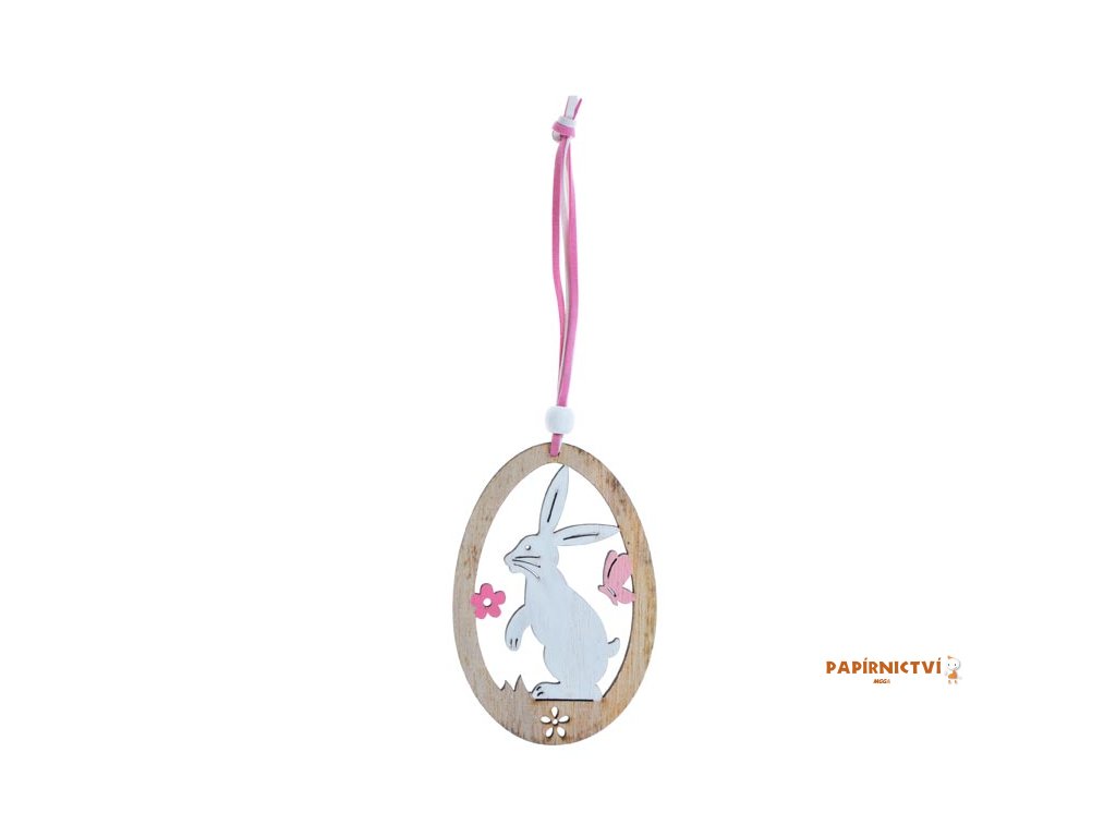 Vejce dřevo závěs 2D zajíc 10cm 2221419