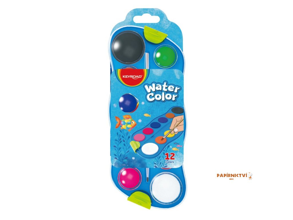Vodové barvy KEYROAD s malířskou paletou, 12 barev A870