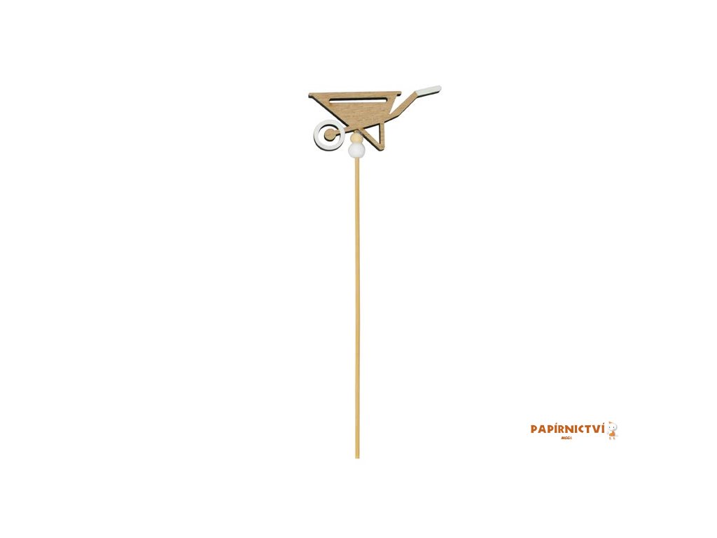 Dřevěný zápich kolečko. Zápich v designu dřevěného kolečka, poslouží jako krásná dekorace na Vaši zahradu nebo na zkrášlení interiéru.Velikost: 25 cm