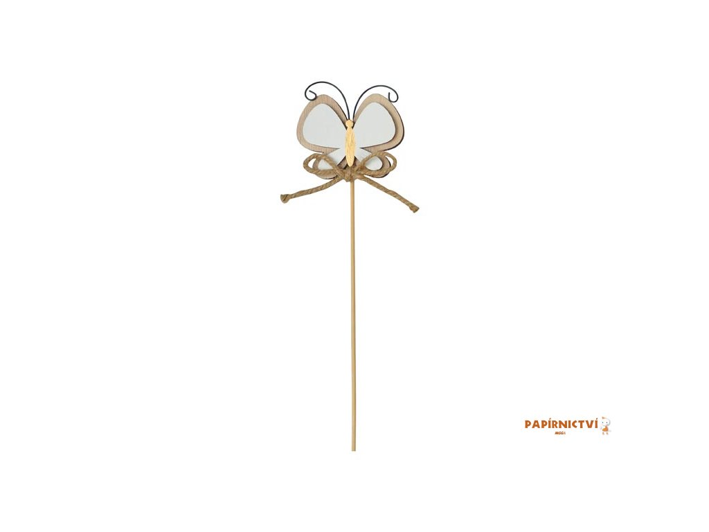Dřevěný zápich motýl. Zápich v designu dřevěného motýla, poslouží jako krásná dekorace na Vaši zahradu nebo na zkrášlení interiéru.Velikost: 29