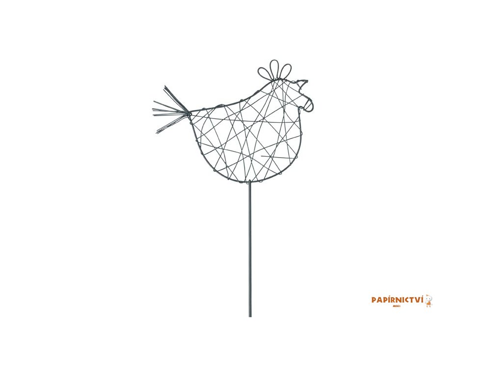Kovový zápich slepice. Zápich v designu kovové slepičky, poslouží jako krásná dekorace na Vaši zahradu nebo na zkrášlení interiéru.Velikost: 47 cm