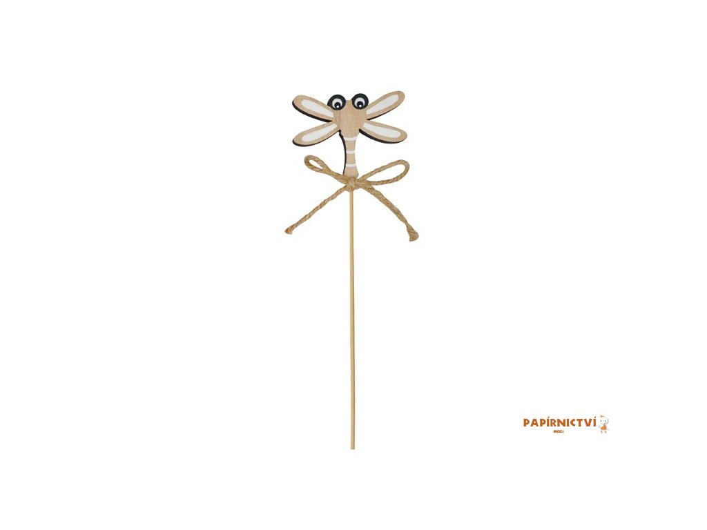 Dřevěný zápich vážka. Zápich v designu dřevěné vážky, poslouží jako krásná dekorace na Vaši zahradu nebo na zkrášlení interiéru.Velikost: 25 cm