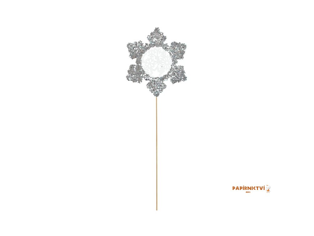 Vánoční dekorace, zápich vločka v bílé barvě s glitrem. Ozdobte si květináč nebo jinou měkkou plochu touto oblíbenou dekorací. Vhodné do interiéru i exteriéru.Motiv: vločka