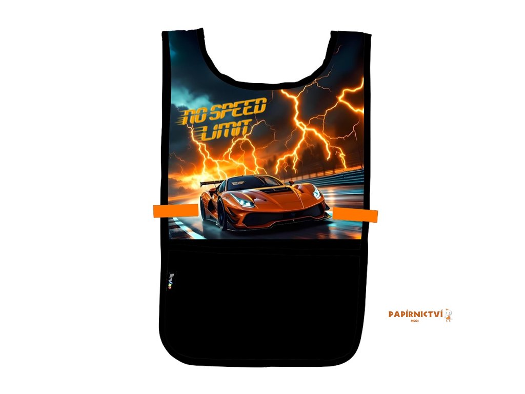 Zástěra pončo do výtvarné výchovy či na jiné tvořící aktivity. Oblékání přes hlavu, po stranách zapínání na druk. Vpředu jedna prostorná kapsa. Materiál 100% polyester..