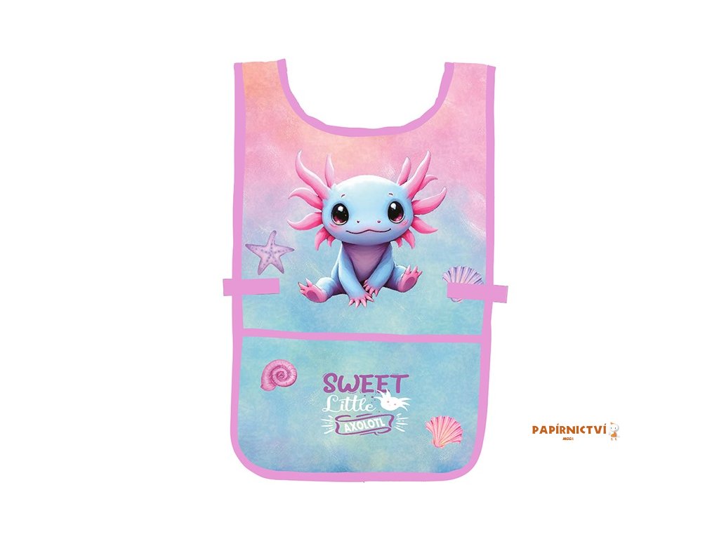 Zástěra pončo do výtvarné výchovy či na jiné tvořící aktivity. Oblékání přes hlavu, po stranách zapínání na druk. Vpředu jedna prostorná kapsa. Materiál 100% polyester..