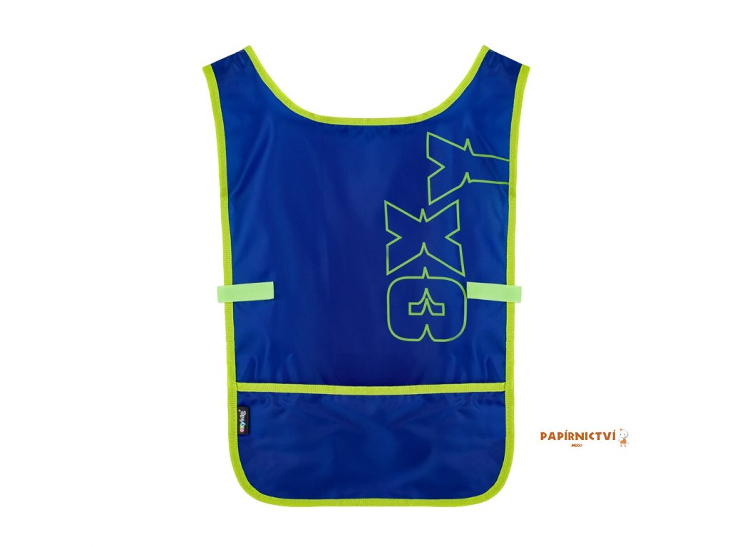 Zástěra pončo do výtvarné výchovy či na jiné tvořící aktivity. Oblékání přes hlavu, po stranách zapínání na druk. Vpředu jedna prostorná kapsa. Materiál 100% polyester.