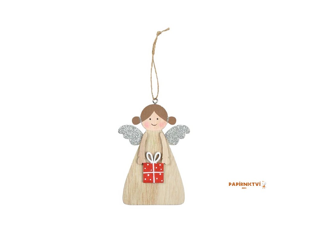 Závěs dřevěný anděl dárek 12cm CJ-22F64C 8886256