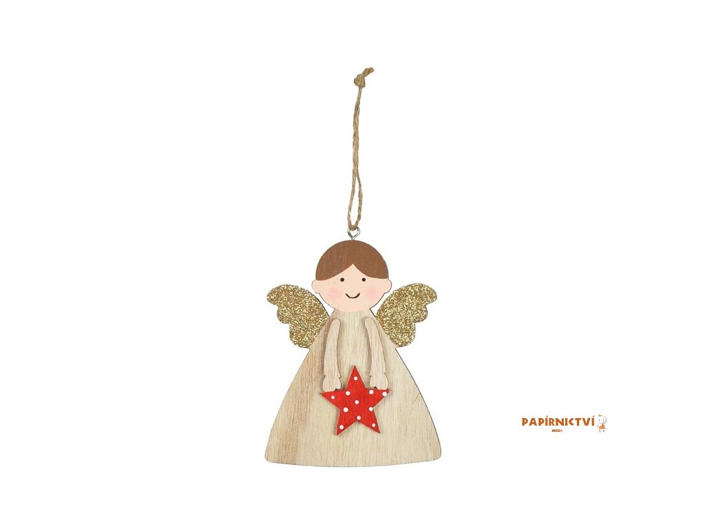Závěs dřevěný anděl hvězda 12cm CJ-22F64A 8886254