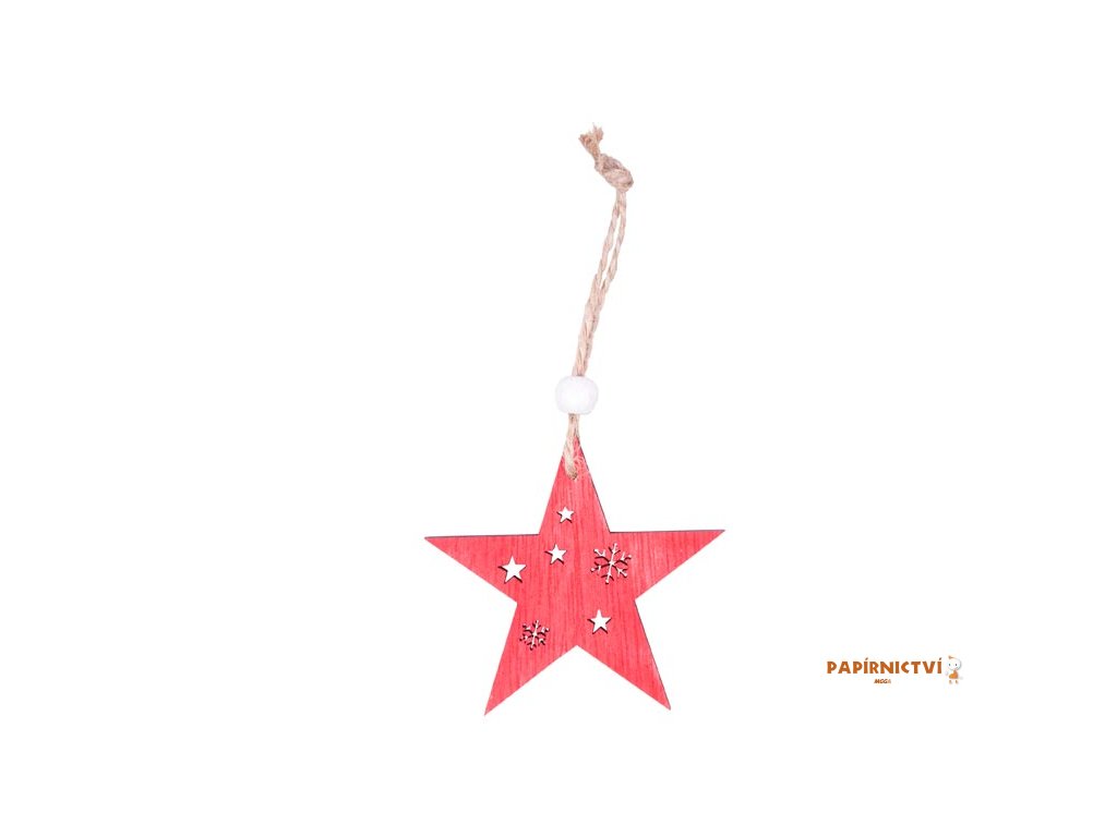 Dřevěná červená hvězda na zavěšení. Krásný závěs hvězda je opatřený provázkem s korálkem na zavěšení. Můžete ho zavěsit na stromeček, do okna nebo na dveře. Zkrášlí tak váš interiér, a umocní vánoční atmosféru.BALENÍ OBSAHUJE: