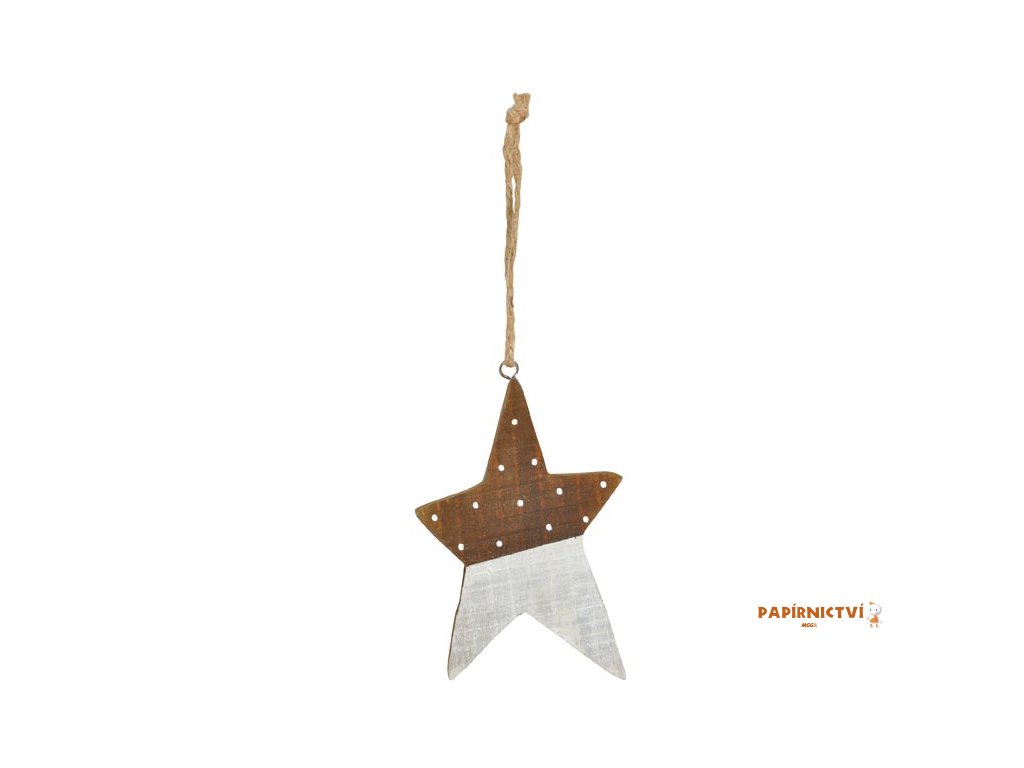 Vánoční dřevěná dekorace ve tvaru hvězdy na zavěšení. Krásná, vánoční dekorace vyrobena ze dřeva s provázkem, které umožňuje snadné zavěšení. Lze použít na různé dekorace jako zavěsit na dveře či okno. Dřevěné ozdoby mají tu výhodu, že se při pádu hned nerozbijí a můžete si tak zkrášlit vaše bydlení.Uvedená cena je za 1 ks.