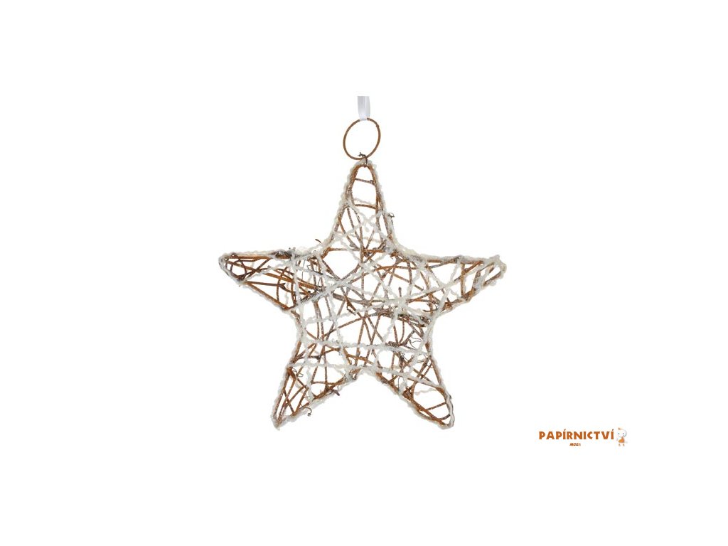 Vánoční hvězda na pověšení. V moderním nevtíravém designu. Tato vánoční ozdoba je opatřena stužkou na zavěšení. Můžete ji použít na ozdobení vánočního stromečku, zavěsit na dveře, okno a zkrášlit tak Vaše bydlení.Velikost: 150 mm