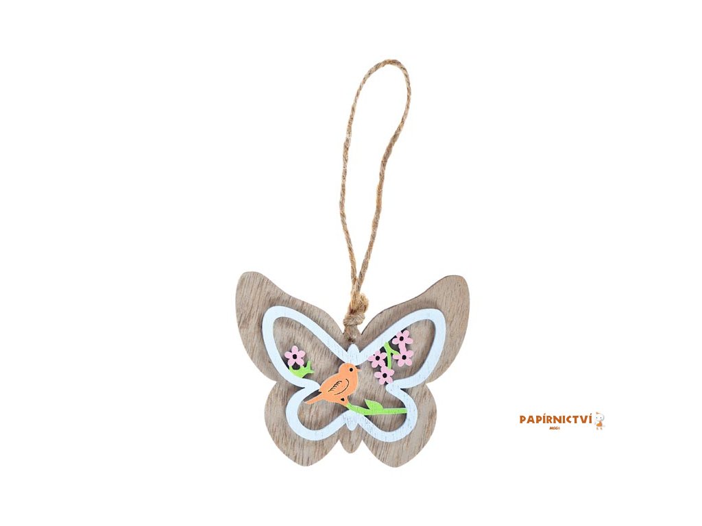 Velikonoční dřevěná dekorace 3D motýlek se závěsem. Vyzdobte si byt velikonočními dekoracemi a přivítejte tak svátky jara. Tuto dekoraci můžete použít na dekorování velikonočních věnců nebo větviček. Dekorace obsahuje výřez s dalšími velikonočními motivy. Dekorace má provázek na zavěšení.Velikost: 100 mm