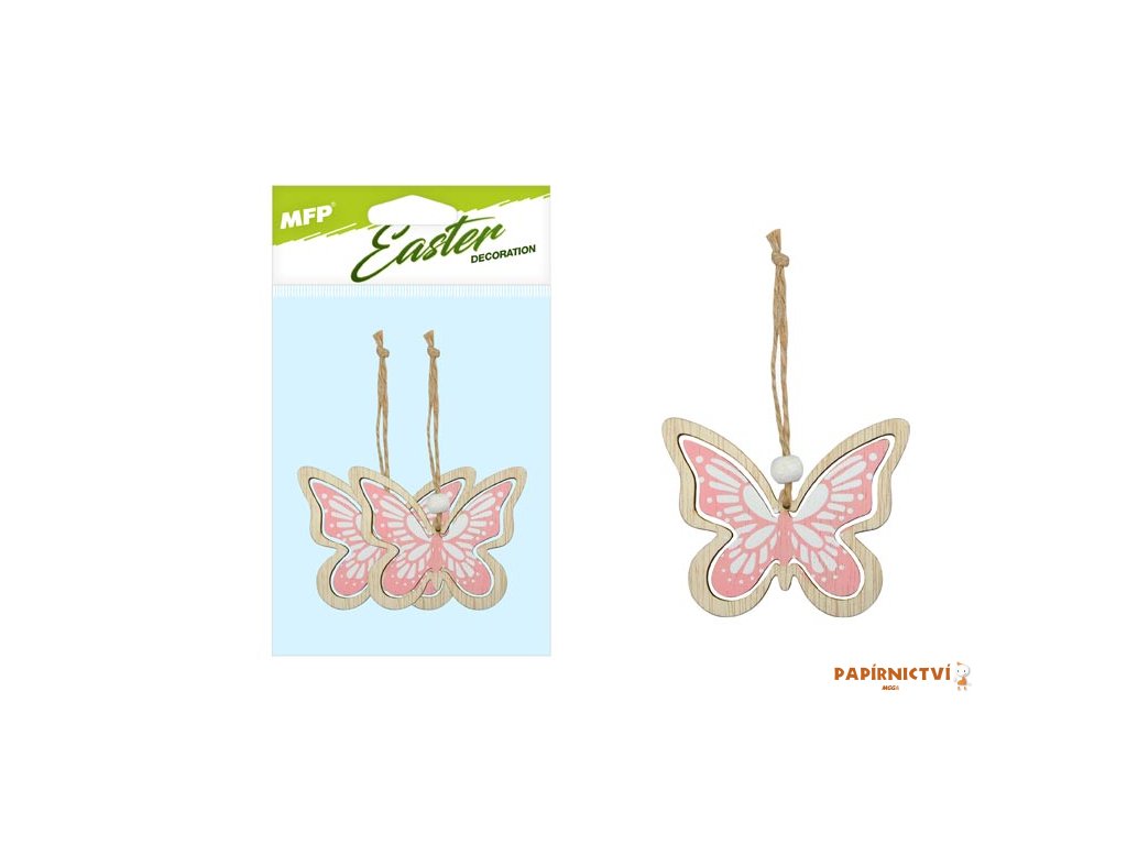 Závěs Motýli dřevo 2ks/7cm růžoví 2221614