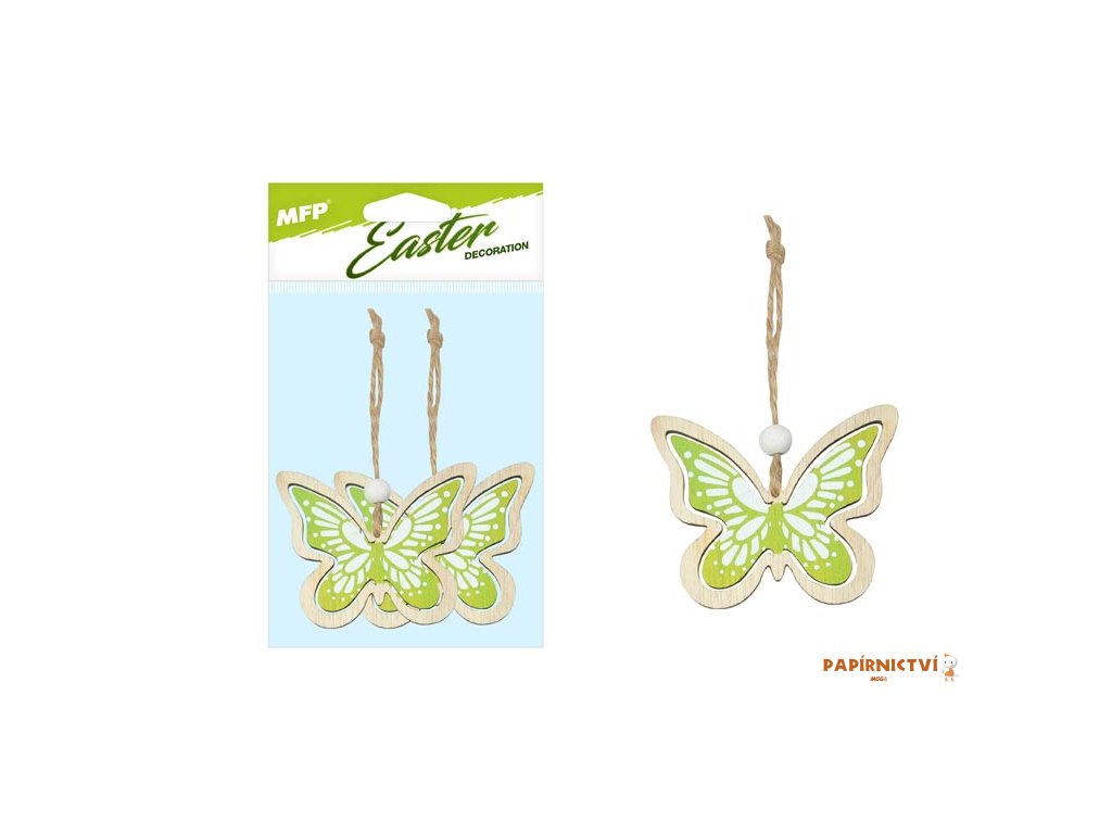 Závěs Motýli dřevo 2ks/7cm zelení 2221616