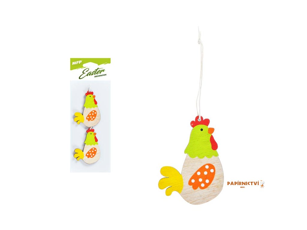 Závěs Slepice dřevo 2ks 6,5cm žlutá 2221422