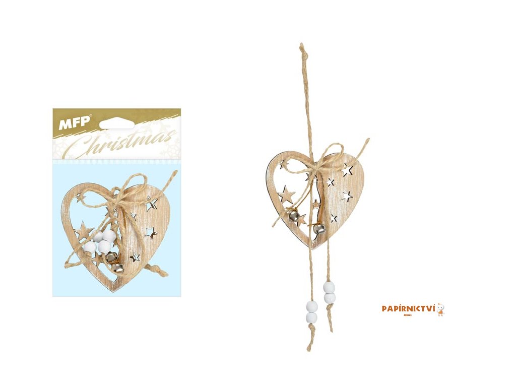 Vánoční dřevěná ozdoba srdce s rolničkami a závěsem. Tato dekorace je opatřena provázkem pro snadné zavěšení. Můžete ji použít na ozdobení vánočního stromečku, zavěsit na dveře, okno a zkrášlit tak Vaše bydlení.Velikost: 80 mm