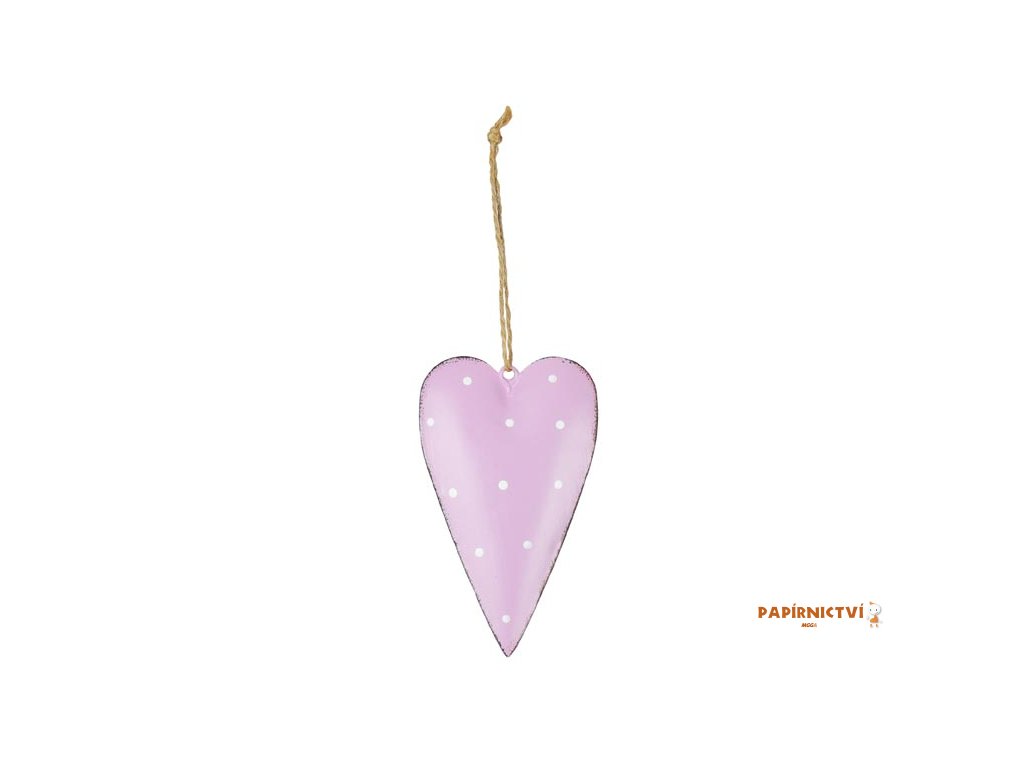 Krásná dekorace v designu fialového kovového srdce s bílými puntíky a závěsem, poslouží jako krásná dekorace do exteriéru nebo do interiéru. Dekorace má provázek na zavěšení.Barva: fialová