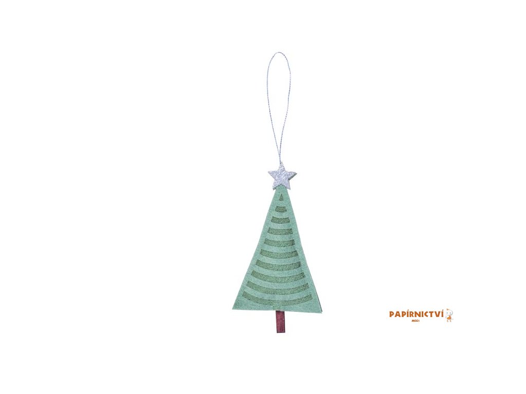 Vánoční dekorace stromek na zavěšení, v zelené barvě se stříbrnou hvězdou. Krásný závěs stromek z filcu je opatřený provázkem na zavěšení. Můžete ho pověsit na stromeček, do okna nebo na dveře. Zkrášlí tak váš interiér, a umocní vánoční atmosféru.Velikost: 65 mm