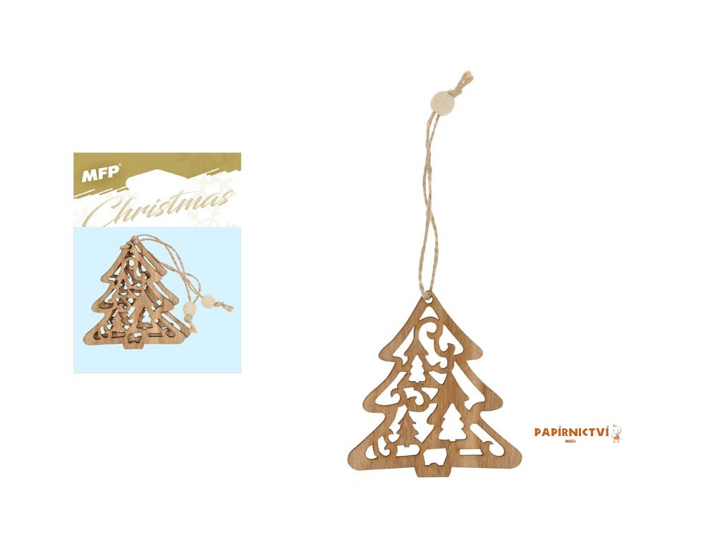 Vánoční dřevěná vyřezávaná dekorace stromek se závěsem. Tato vánoční ozdoba je opatřena korálkem, očkem a provázkem na zavěšení. Můžete ji použít na ozdobení vánočního stromečku, zavěsit na dveře, okno a zkrášlit tak Vaše bydlení.BALENÍ OBSAHUJE: