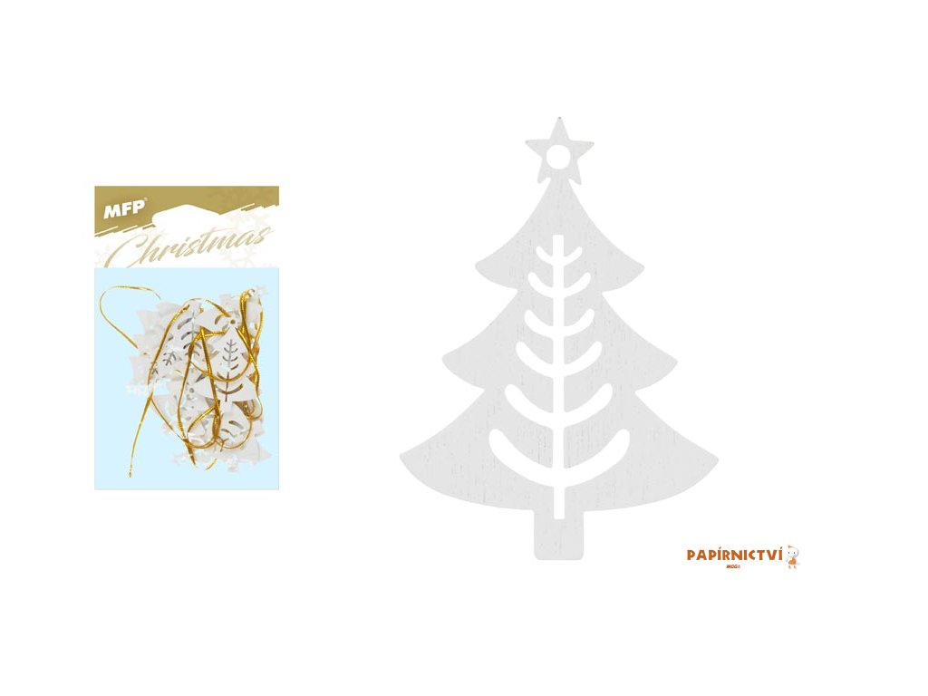 Vánoční dřevěná bílá dekorace stromek se závěsem. Tato vánoční ozdoba je opatřena očkem a provázkem na zavěšení. Můžete použít na ozdobení vánočního stromečku, zavěsit na dveře, okno a zkrášlit tak Vaše bydlení.BALENÍ OBSAHUJE: