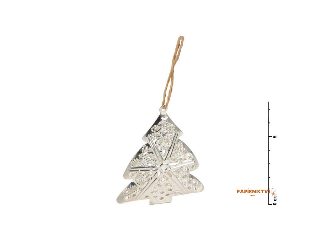 Závěs Stromek kov 3D stříbrný 7cm 8885546