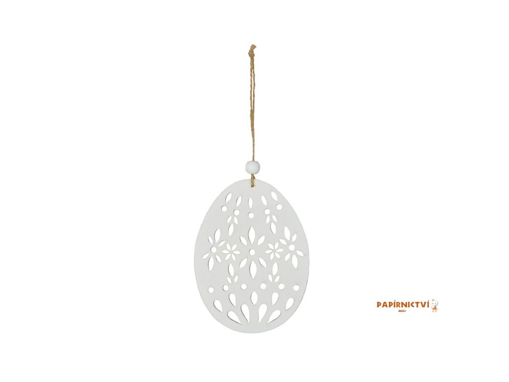 Velikonoční dřevěná dekorace vajíčko v bílé barvě se závěsem. Tato dekorace je ideálním doplňkem do interiéru, vnese domů velikonoční náladu. Dekorace má provázek na zavěšení.Barva: bílá
