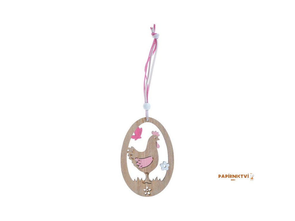 Závěs Vejce dřevo 2D slepice 10cm 2221418
