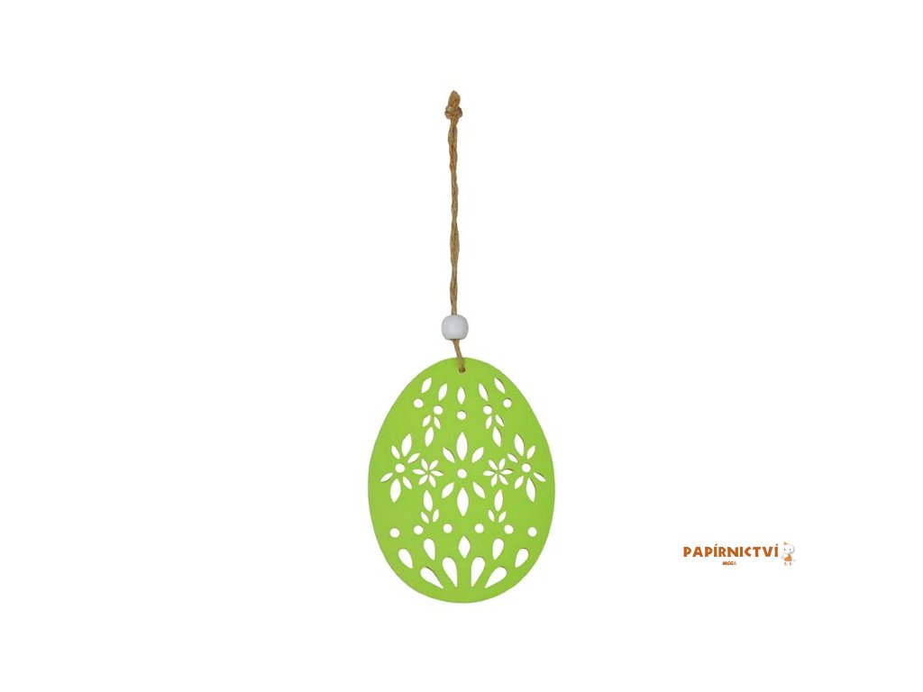 Velikonoční dřevěná dekorace vajíčko v zelené barvě se závěsem. Tato dekorace je ideálním doplňkem do interiéru, vnese domů velikonoční náladu. Dekorace má provázek na zavěšení.Barva: zelená