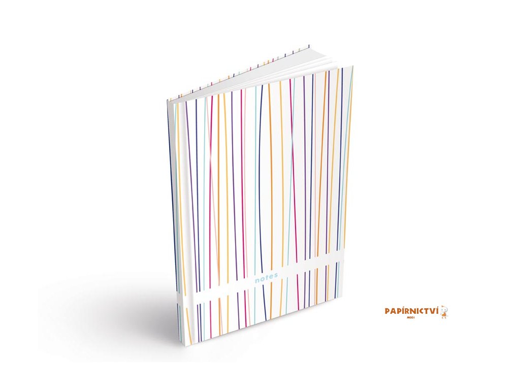 Záznamová kniha MFP ve formátu A4, linkovaná, je zdobena tenkými barevnými svislými čárami na bílém podkladu. Je perfektní pro zapisování poznámek ve škole, v kanceláři nebo na schůzkách, a zároveň skvěle poslouží jako deník, plánovač či zápisník pro vaše nápady a úkoly. Desky jsou vyrobeny z pevného lepeného kartonu pokrytého laminem, což zajišťuje odolnost. Díky vazbě V8, známé svou mimořádnou pevností, zůstanou stránky bezpečně na svém místě i při častém používání.Formát: A4