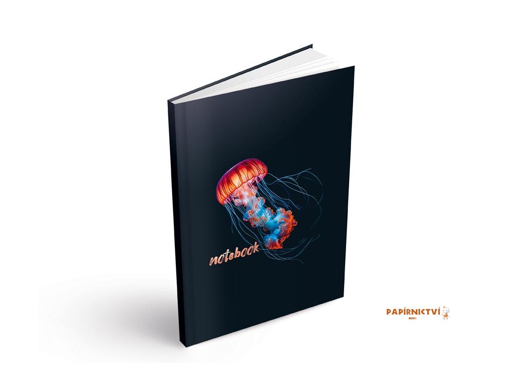 Záznamová kniha MFP ve formátu A5, čistá, bez linek, s motivem medúzy na tmavém pozadí. Je ideální pro různé kreativní a osobní účely, jako je kreslení, skicování, psaní poznámek, deníkování, nebo tvorbu diagramů a myšlenkových map. Desky jsou vyrobeny z pevného lepeného kartonu pokrytého laminem, což zajišťuje odolnost. Díky vazbě V8, známé svou mimořádnou pevností, zůstanou stránky bezpečně na svém místě i při častém používání.Formát: A5