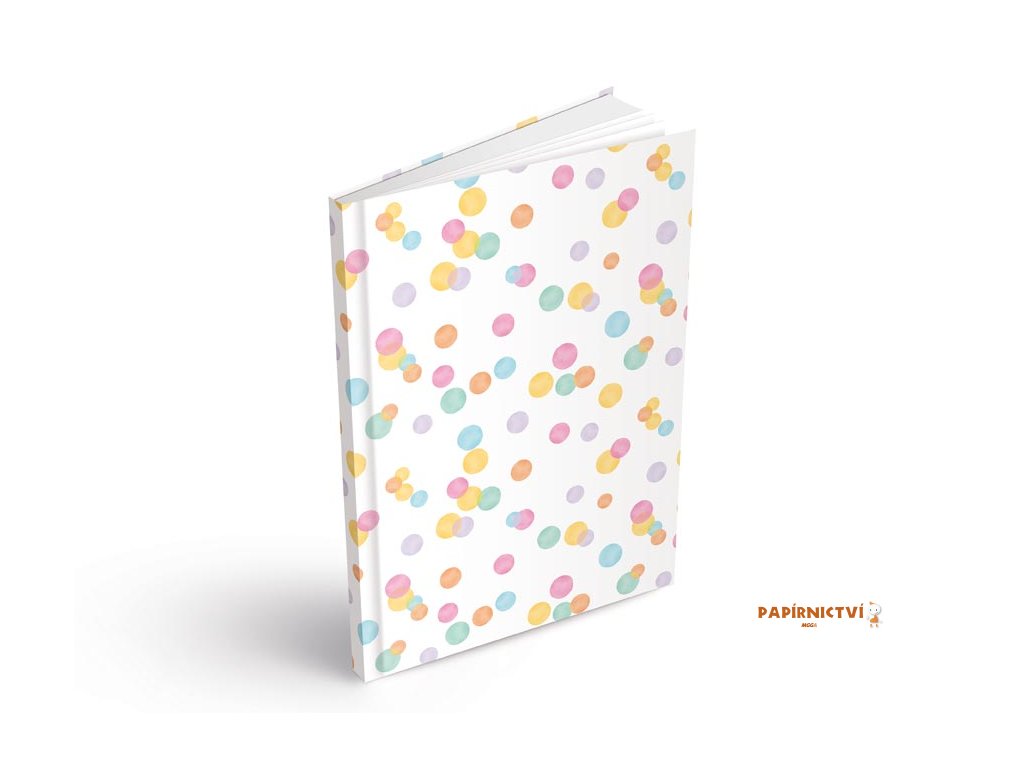 Záznamová kniha MFP ve formátu A5, čistá bez linek, s motivem barevných puntíků. Je ideální pro různé kreativní a osobní účely, jako je kreslení, skicování, psaní poznámek, deníkování, nebo tvorbu diagramů a myšlenkových map. Desky jsou vyrobeny z pevného lepeného kartonu pokrytého laminem, což zajišťuje odolnost. Díky vazbě V8, známé svou mimořádnou pevností, zůstanou stránky bezpečně na svém místě i při častém používání.Formát: A5
