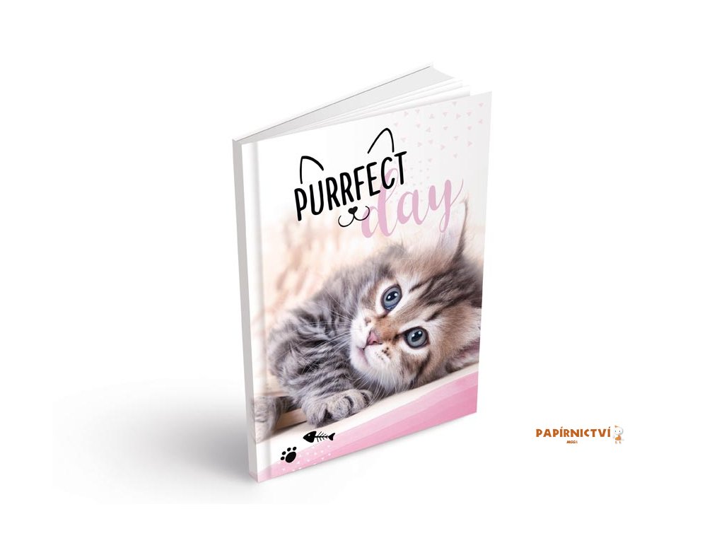 Záznamová kniha MFP - linka. Desky jsou z pevného lepeného kartonu s laminem. Na titulní straně je spokojené koťátko. Tyto bloky jsou opatřeny vazbou V8, která patří mezi nejpropracovanější a nejpevnější vazby.Formát: A5