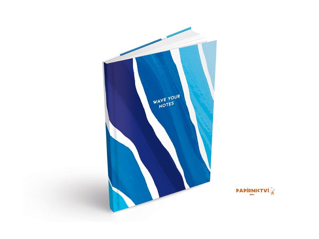 Záznamová kniha MFP ve formátu A5, linkovaná, zdobena vlnitými pruhy v různých odstínech modré a bílé. Je perfektní pro zapisování poznámek ve škole, v kanceláři nebo na schůzkách, a zároveň skvěle poslouží jako deník, plánovač či zápisník pro vaše nápady a úkoly. Desky jsou vyrobeny z pevného lepeného kartonu pokrytého laminem, což zajišťuje odolnost. Díky vazbě V8, známé svou mimořádnou pevností, zůstanou stránky bezpečně na svém místě i při častém používání.Formát: A5