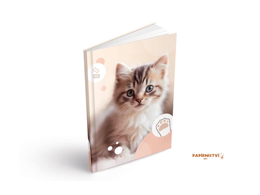 Záznamová kniha MFP ve formátu A6, linkovaná, s roztomilým obrázkem koťátka. Je perfektním společníkem pro každodenní poznámky, zápisky nebo kreativní nápady. Díky kompaktním rozměrům ho snadno uložíte do kabelky či batohu, takže ho můžete mít vždy po ruce. Díky vazbě V8, známé svou mimořádnou pevností, zůstanou stránky bezpečně na svém místě i při častém používání.Formát: A6
