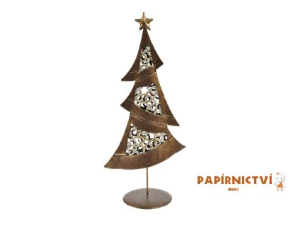 Stromek plechový zlatý s 3D efektem. Vánoční stromek je vyřezávaný a má podstavec. Lze umístit na jakoukoliv plochu ke zkrášlení místnosti.