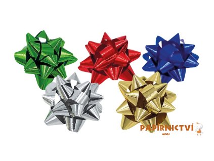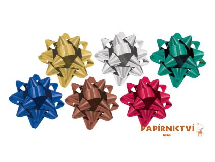 Rozetka v mixu metalických barev. Ideální pro moderní ozdobení dárku. Rozetka má na spodní straně lepící pásku pomocí které ji připevníte na krabičku.