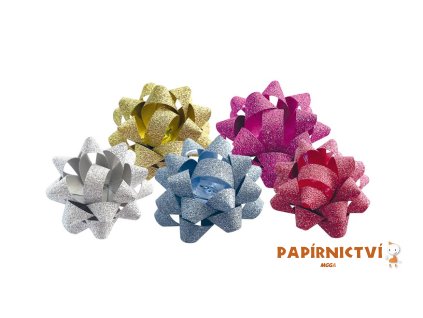 Glittrová rozetka v mixu barev. Ideální pro moderní ozdobení dárku. Rozetka má na spodní straně lepící pásku pomocí které ji připevníte na krabičku.