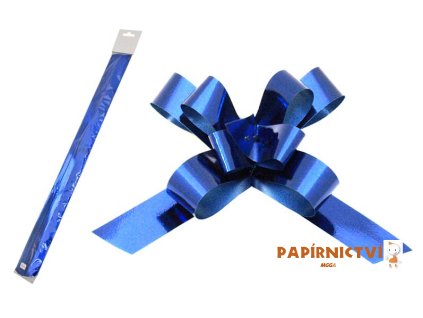 Stahovací stuha v metalické modré barvě. Stahovací stuhy jsou vhodné na ozdobení dárků. Jednoduchým zatažením za konce stuh, vytvoříte nádherný ozdobný květ nebo mašli.