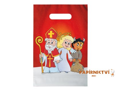 Vánoční dárkový sáček s motivem vánočních stromečků v mixu barev. Vyrobený z luxusního celofánu s potiskem. Skvělý na zabalení drobných dárků. Sáček můžete uzavřít vázací stuhou...